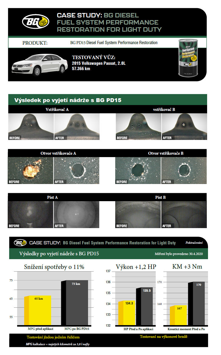 - navrací výkon motoru, snižuje spotřebu nafty, zlepšuje studené starty a zajišťuje klidný chod motoru